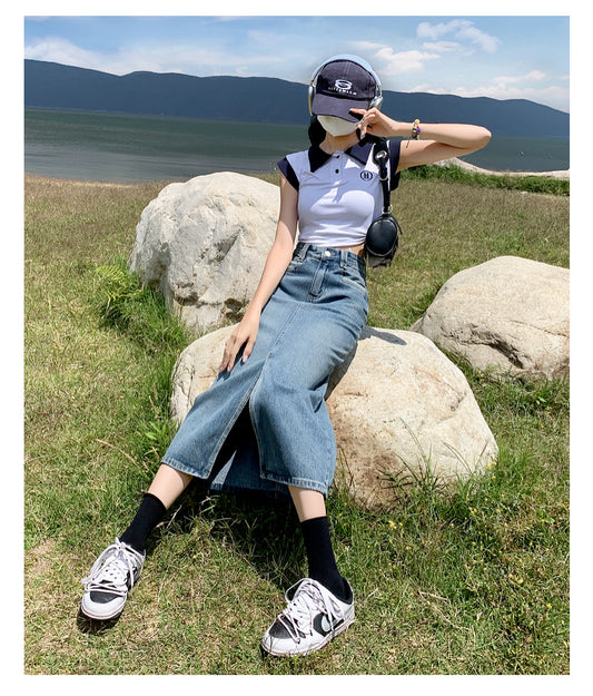 売り切れスリットデニムスカート