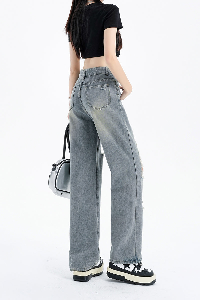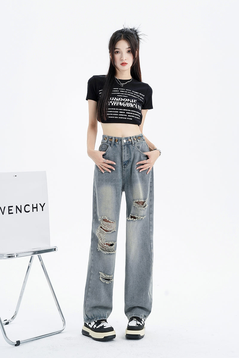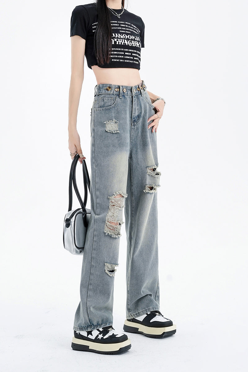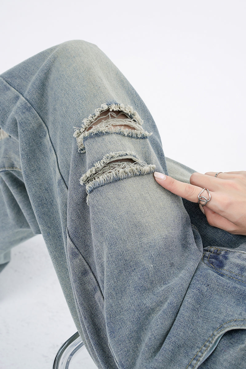 ダメージワイドデニムパンツ
